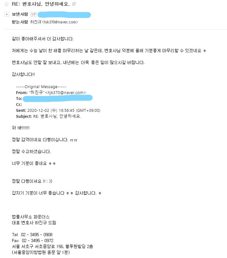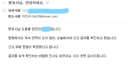뒤늦게 선임되었지만, 적극적으로 양형자료를 준비하고, 의뢰인의 폭행사건에 대한 실체적 진실이 밝혀지지 않은 점, 이로 인한 이 사건 게시글에 억울한 사정이 있는 점, 허위사실 명예훼손 자체에 대한 법리적 쟁점등 다양한 사유를 주장하며 선고유예를 해주시기를 재판부에 호소하였고,