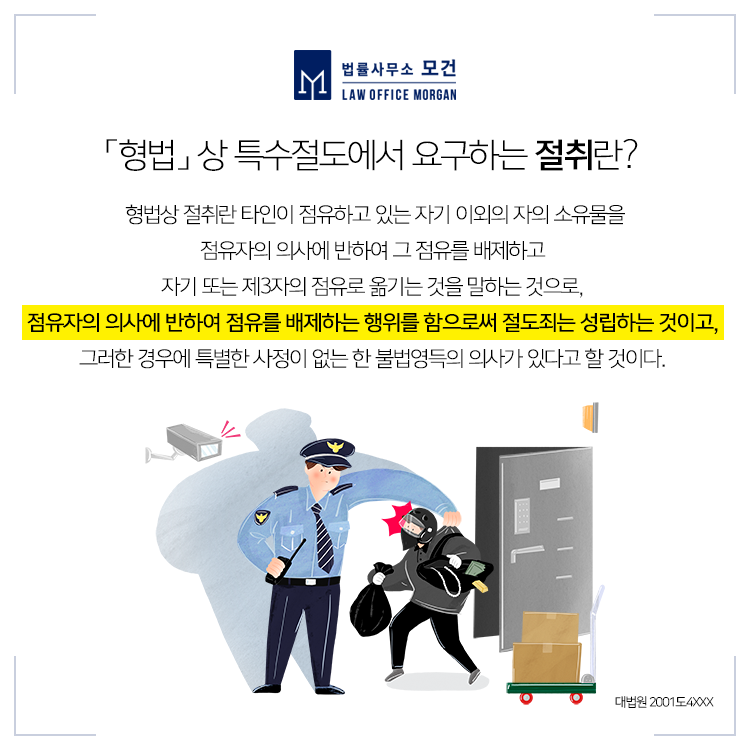 특수강도는 「형법」 제334조에 따라 야간에 사람의 주거, 관리하는 건조물 등에 침입하여 강도(폭행 또는 협박으로 재물을 강취하는 등 이득을 취하는 것)의 죄를 범하는 것으로 무기 또는 5년 이상의 징역에 처합니다.