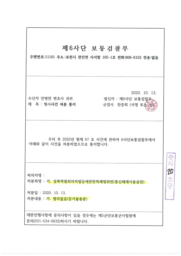 의뢰인은 자신이 사용하던 핸드폰을 공장 초기화한 후 자신의 아들에게 주었고 의뢰인은 자신의 혐의를 벗을 수 있는 카카오톡 메시등이 없어 혐의를 인정하고 합의절차를 진행해야 하는 것이 아닌지 변호인에게 문의해 왔습니다. 이에 변호인은 해당 핸드폰에 대한 디지털 포렌식 절차를 거쳐 의뢰인이 억울할 수 있다는 정황을 만든 후, 상대방과 대화 녹음과 통화녹음 등을 통해 사후 정황증거를 마련하도록 하여, 군사경찰대, 군 검찰 조사 절차에서 무혐의를 소명할 수 있는 정황증거를 적극 활용하였습니다.