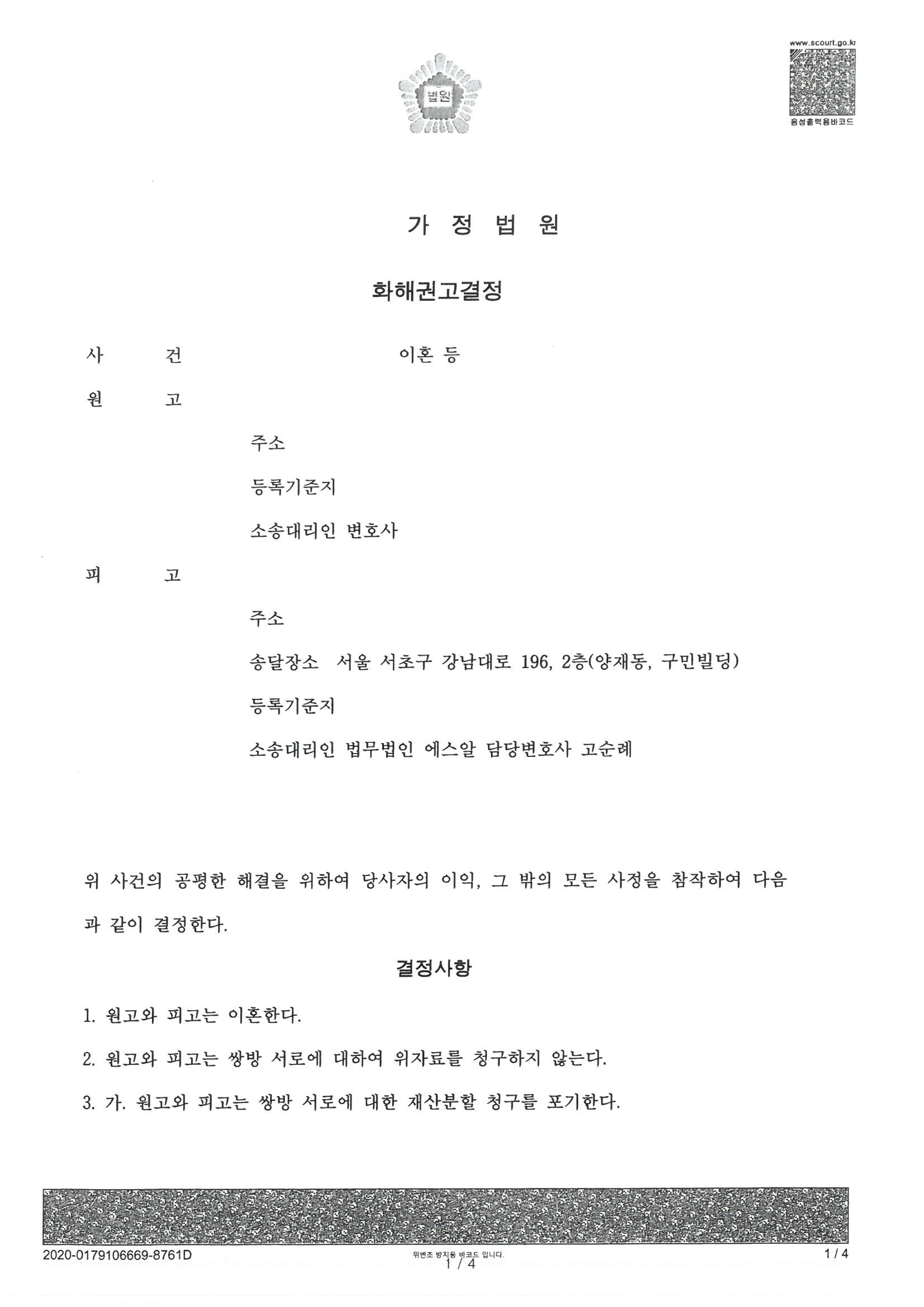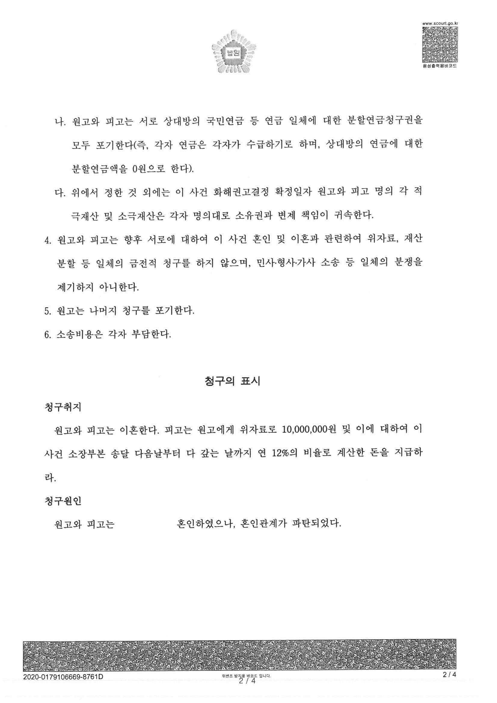 남편은 이혼을 거부한 사건입니다. 저는 남편분은 수임하였습니다.