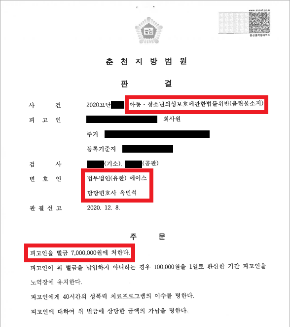 그런데 구법이 적용되는 경우라고 하더라도 반드시 벌금형 등 약하게 처벌받을 것이라고 단정할 수 없는데요. 최근에는 구법이 적용되는 경우라고 하더라도 대부분 구공판되고 있고, 초범이라고 하더라도 무작정 혐의를 부인하거나 아청물을 많이 소지하는 등 죄질이 나쁜 경우에는 실형이 선고되는 사례도 발생하고 있습니다.