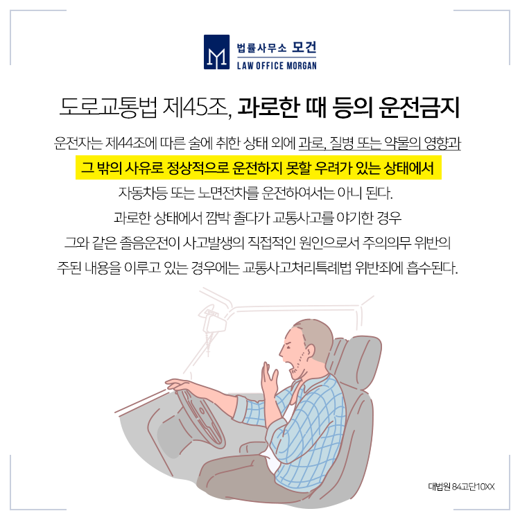 이 사고로 피해자 B씨는 외상성 혈기흉으로, 피해자 C씨는 뇌연수마비 등으로 사망에 이르게 되었습니다. 도로교통법 제45조는 자동차등의 운전자는 과로 등의 영향과 그 밖의 사유로 정상적으로 운전하지 못할 우려가 있는 상태에서 자동차등을 운전하여서는 아니된다고 규정하고 있는데요.