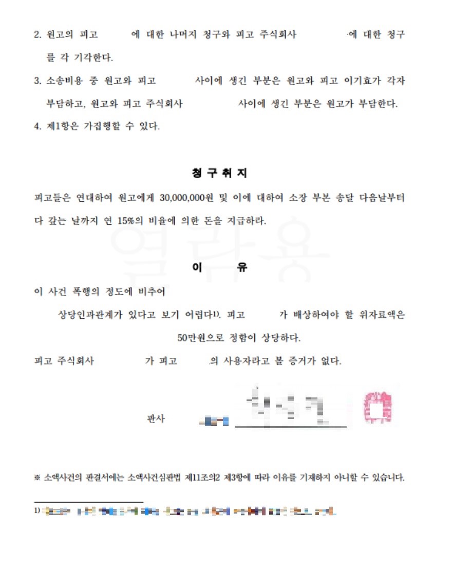 상대방은 심한 폭행을 당하였다고 주장하며 3천만원을 청구하는 동시에, 일응 그럴 듯한 증거들까지 첨부하여 적극적으로 소송을 제기하였습니다.