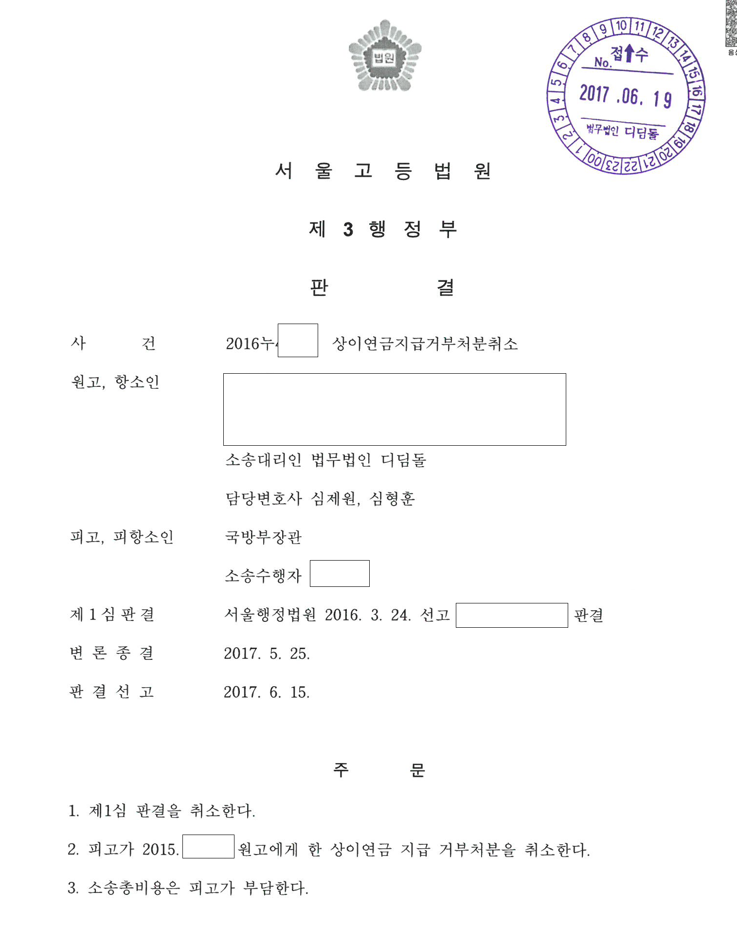 상이연금지급거부 처분 승소, 1심 판결을 뒤집고 승소하였습니다. 군법무관 출신 변호사라서 가능한 일입니다.