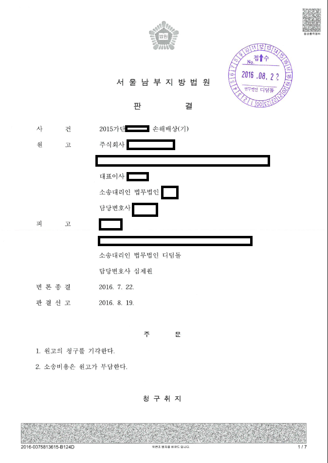 가맹거래사 겸 변호사 심제원입니다. 서울남부지방법원에서 판결이 있었고요, 저는 가맹점주 쪽을 대리하였습니다.