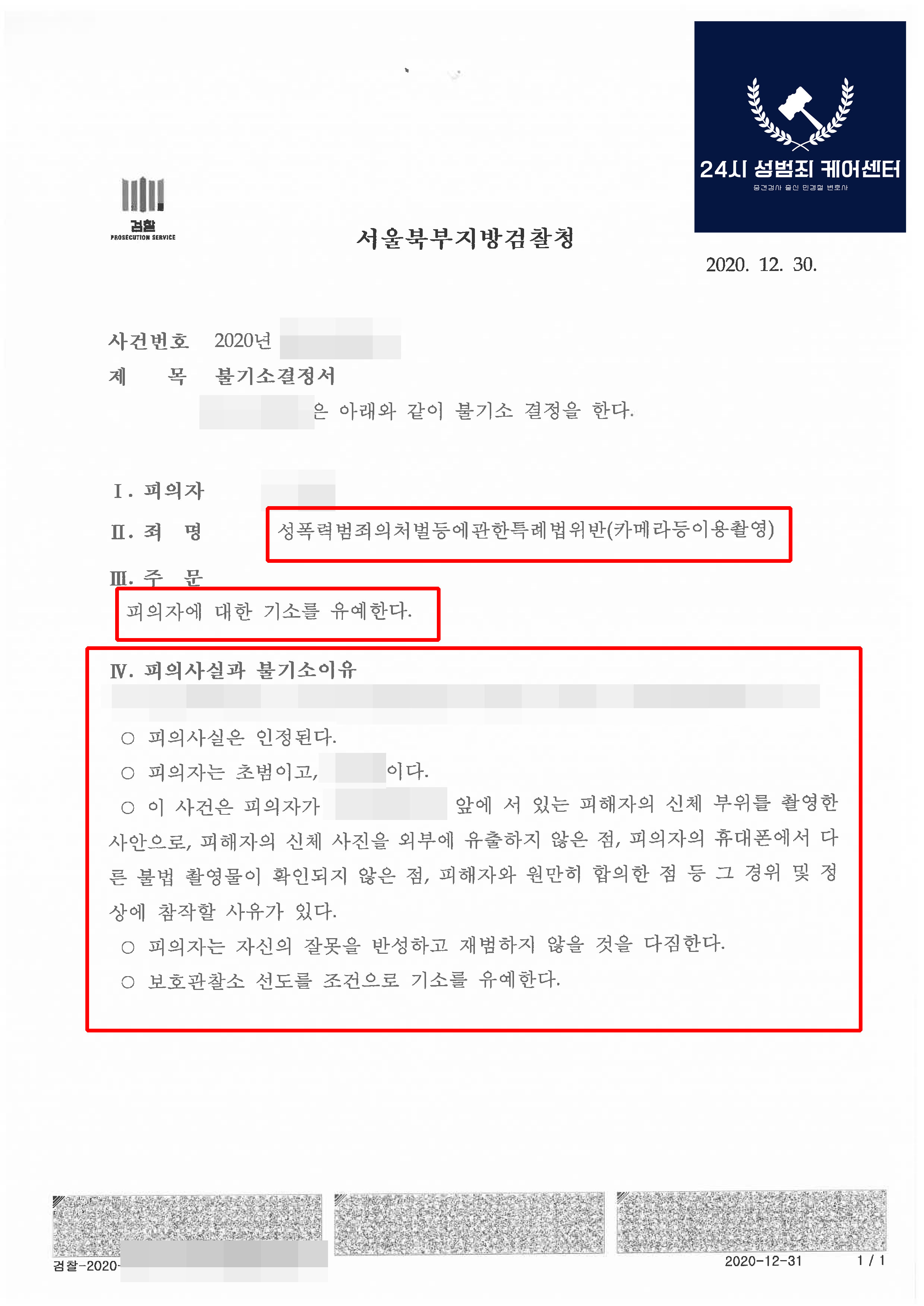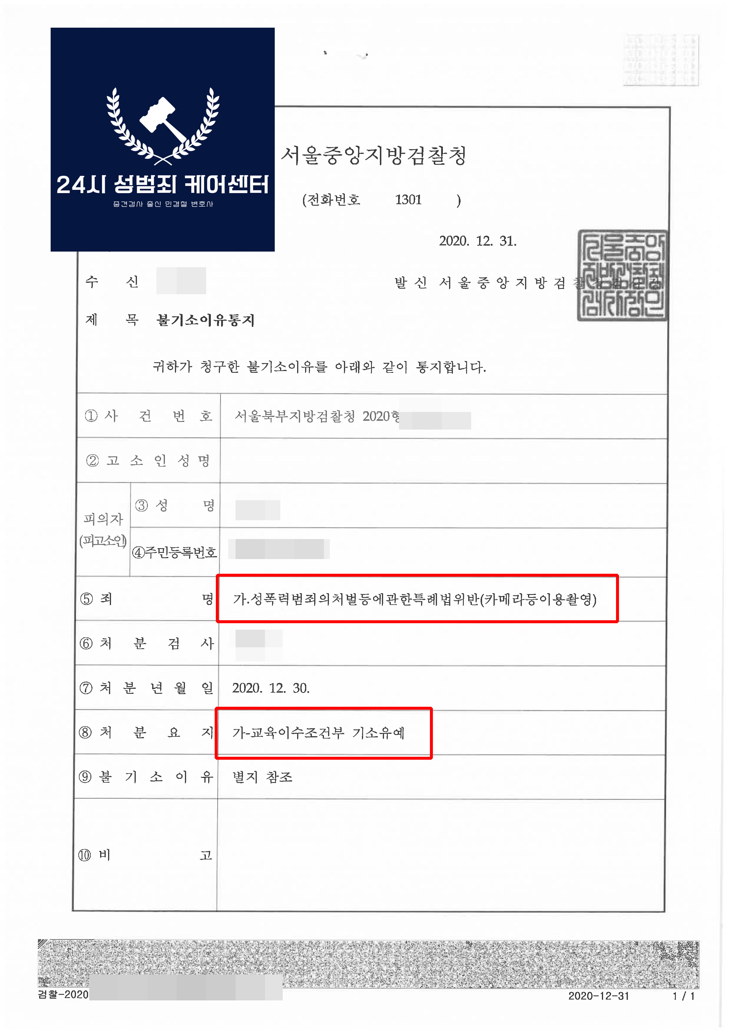 민경철 변호사의 24시 성범죄 케어센터의 조력결과