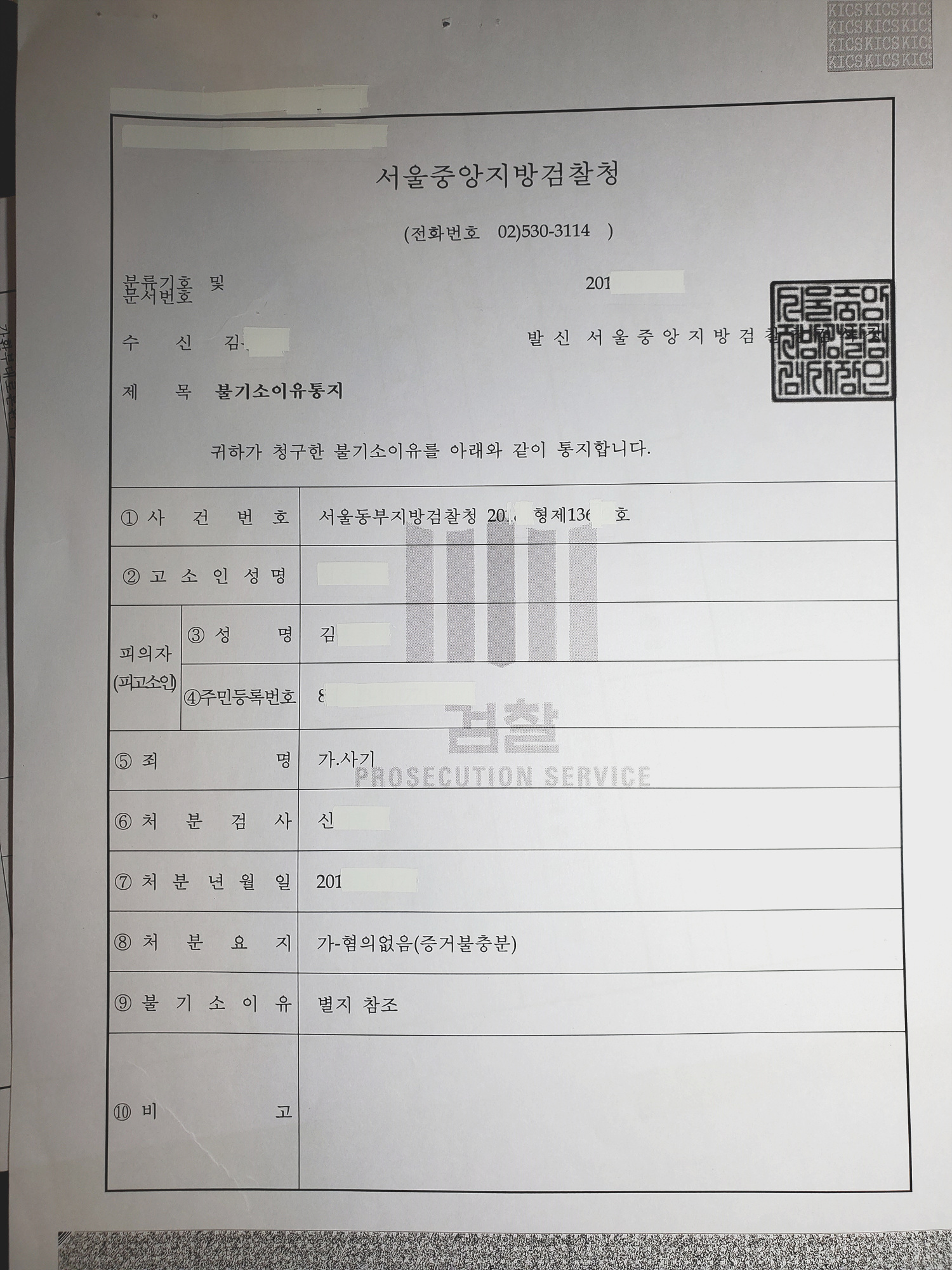 7. 기망행위가 존재하지 않다는 주장을 하여 결국 불기소처분을 받음