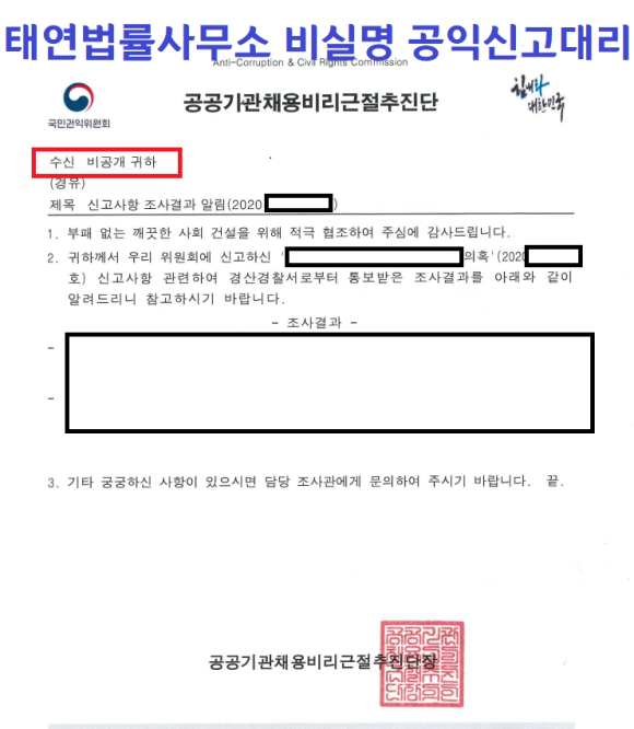 태연법률사무소 공익신고 비실명 대리신고 사례