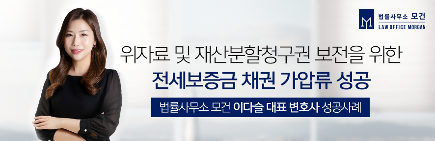 특히 재산분할청구권 행사에 있어서는 가압류는 이혼소송 판결 이후 상대방이 지급을 이행하지 않을 시에도 가압류를 본압류로 이전하여 강제집행까지 수월하게 진행하실 수 있는 장점이 있는데요. 법률사무소 모건의 이다슬 대표 변호사는 마포, 용산, 중구 등 이혼전문변호사로서 위자료, 재산분할, 양육권 및 이를 성공적으로 진행할 보전처분까지 이혼소송 전 과정을 유기적이고 철저하게 진행함으로써 새로운 인생의 새 출발을 도와드립니다.