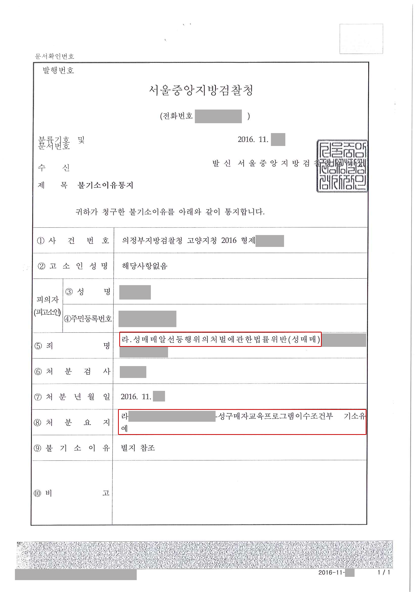 경찰 조사시 의뢰인이 홀로 수사를 받다가 혼자 힘으로는 사건을 해결할 수 없을 것이라고 판단하여 본 법인에 의뢰를 요청하였습니다. 의뢰인의 경우 10년 전 성범죄에 대한 전과가 있는 전과가 있는 상태에서 성범죄를 저지른 것이기 때문에 징역형을 선고받을 가능성도 있어 보였습니다. 그래서 최대한 의뢰인의 형을 감경시키는 쪽으로 대응 방안을 마련하였습니다. 의뢰인의 양형에 도움이 될 만한 반성문 및 탄원서 등 각종 양형자료들을 확보하여 제출하는 한편, 의뢰인의 재범 가능성이 낮다는 점을 증명하기 위한 자료들을 제출하기도 하였습니다. 법원은 의뢰인이 재범이기는 하나 10년 전 과거에 발생한 범죄였던 점과 수사기관에 제출한 양형자료를 참작하여 성구매자교육프로그램이수조건부 기소유예처분을 내렸습니다.