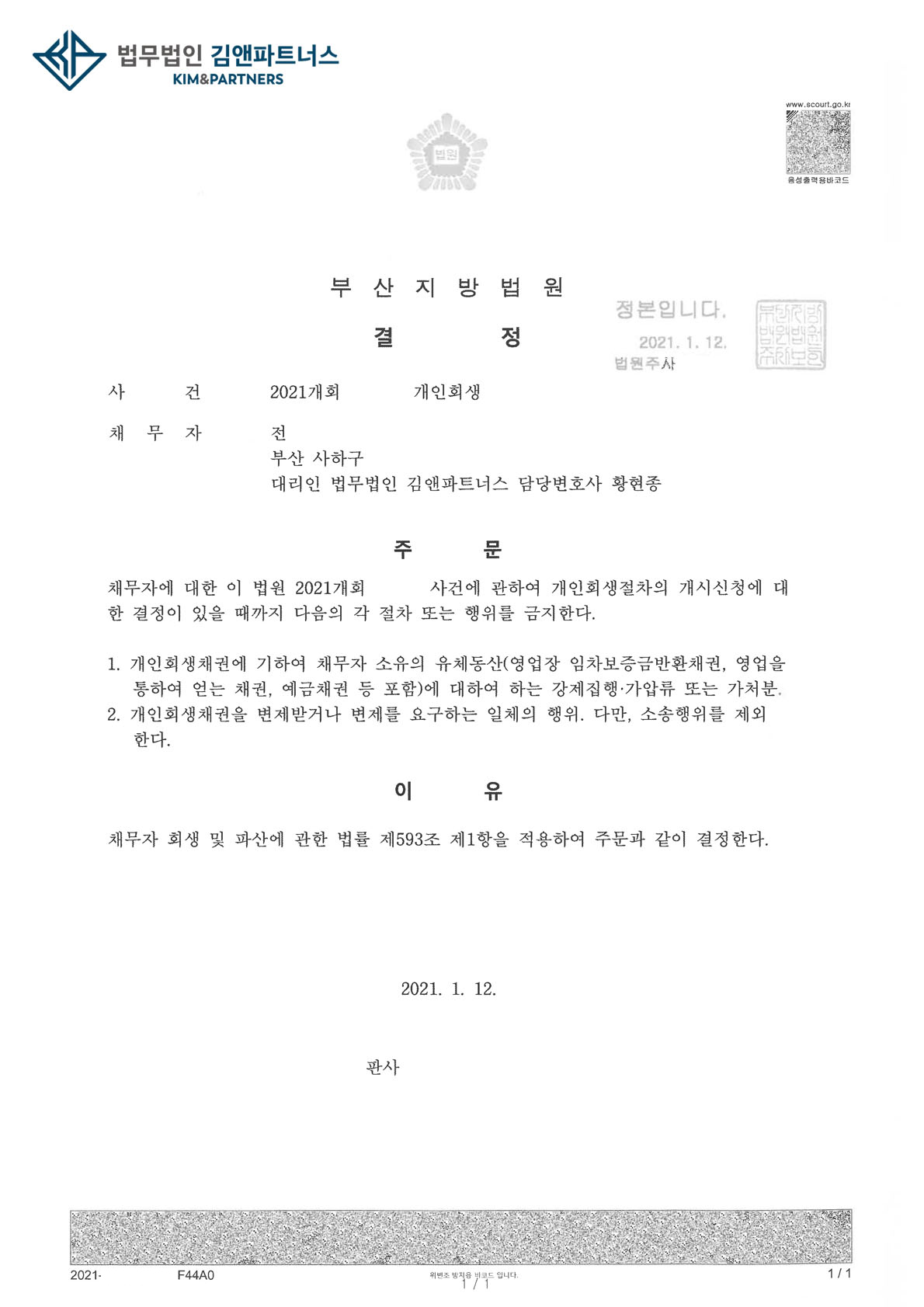황변호사는 최근 부산에서 영업소득자에 대한 개인회생 사건을 담당하여 금지명령을 받았습니다.