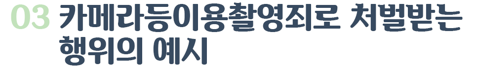 실무상 카메라등이용촬영죄로 처벌받는 행위의 예시를 살펴보면 다음과 같습니다.