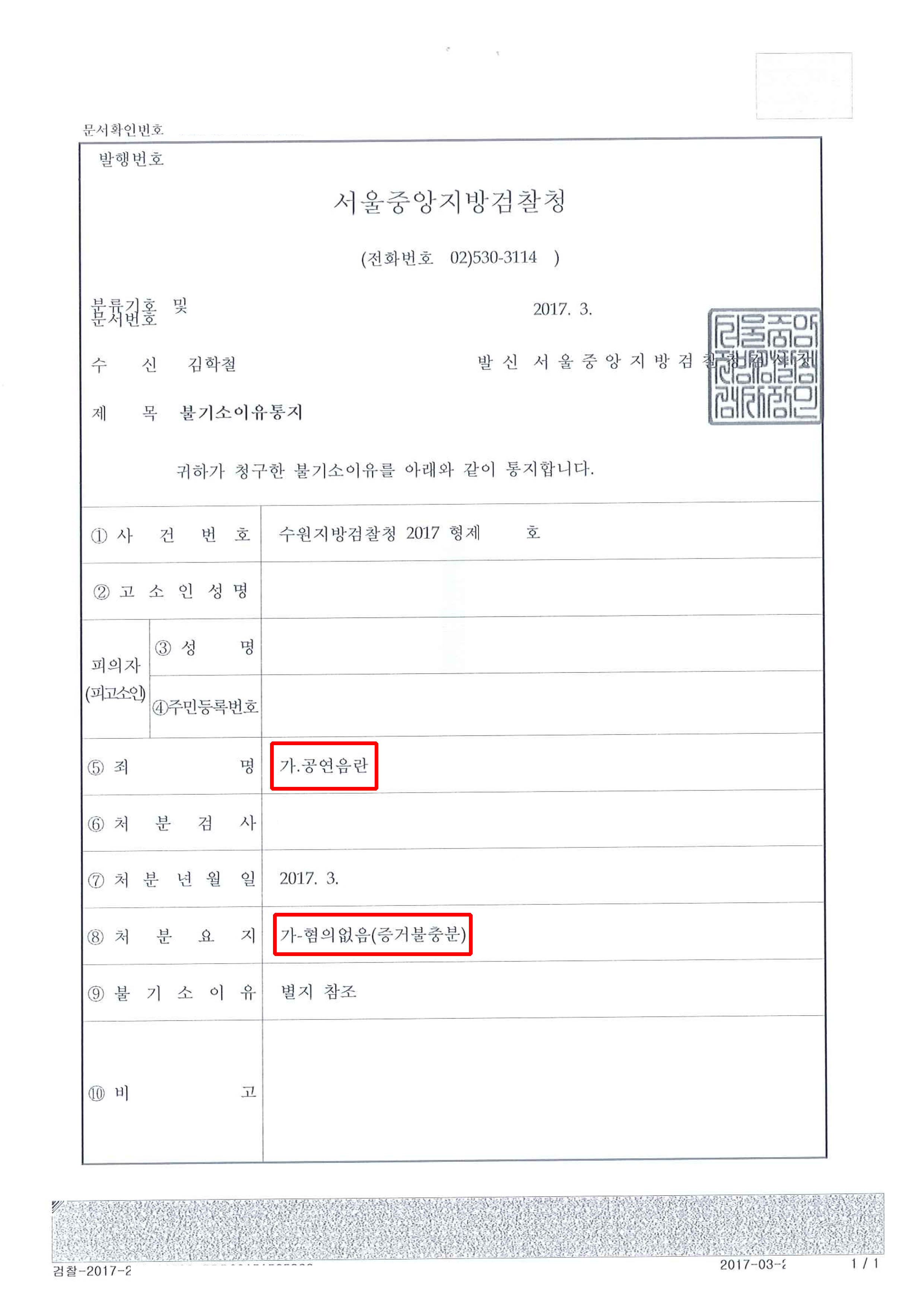 의뢰인은 다행이 경찰조사를 받기 직전에 찾아왔습니다. 즉각 아파트관리사무소와 연락하여 CCTV 분석을 하였습니다. CCTV상에서는 의뢰인이 계단으로 비틀거리며 올라간 것은 촬영되었으나 계단사이의 장면은 촬영되어 있지 않았습니다. 이후 공연음란죄 사건에 대한 최신 판례를 분석하였습니다. 최근 엘리베이터에서 여성과 단둘이 탄 상황에서 자위행위를 하였음에도 공연성이 없다는 이유로 무죄선고가 내려진 판결이 있었습니다. 또한 자신이 살고 있는 집에서 밖을 지나가는 여학생을 보고 자위행위를 하였지만 목격진술이 불분명하다는 이유로 무죄선고가 난 사례도 있었습니다. 판례의 태도와 사실관계를 고려할 때 충분히 무혐의 처분을 받을 수 있을 것이라고 보았습니다. 특히 신고한 여고생은 정확히 의뢰인의 얼굴을 보지는 못했지만 옷차림이나 키 등으로 유추하였다는 점에서 이러한 점만으로는 유죄판결이 쉽지 않다는 점을 포착하였습니다. 검찰은 주장을 받아들여 의뢰인이 당소 장시간 계단에 있었던 것은 맞지만 무슨 행위를 하였는지 확신할 수 없고 아파트 계단 공간이 공연성이 인정되는지도 불분명하다는 이유로 혐의없음(증거불충분) 처분을 내렸습니다.