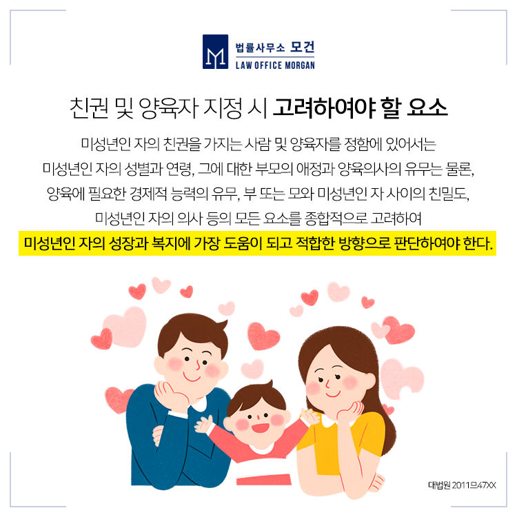 부모가 이혼할 때 친권·양육자를 지정할 때에는 여러 요소를 종합적으로 고려함은 물론 무엇보다 자녀의 성장과 복지에 가장 도움이 되고 적합한 방향으로 판단하기 때문에 꼭 유책배우자라고 해서 불리함을 갖게 되는 것은 아니므로, 본인이 유책배우자로서 양육권을 꼭 가지고와야 한다는 생각이 있으시다면 강남/강북 이혼전문변호사의 전략적인 도움을 받으실 것을 권장해드립니다.