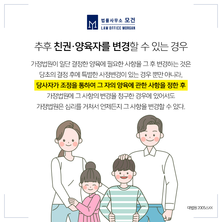 강남/강북 이혼전문변호사인 법률사무소 모건의 이다슬 대표 변호사는 다수의 이혼소송과 친권·양육자지정, 면접교섭권, 양육비청구 등을 진행해온 경험과 노하우를 바탕으로 의뢰인께서 원하시는 결과를 이끌어내는데 최선을 다하고 있습니다. 특히 양육권의 문제는 본인의 말 한마디, 행동 또한 큰 영향을 미칠 수 있으므로 이혼전문변호사의 전반적인 도움을 받으시는 것이 좋습니다. 상담이 필요하신 분들이라면 법률사무소 모건으로 문의하세요.