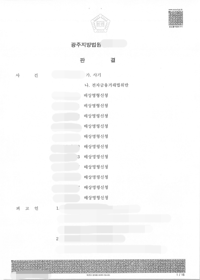 이후 판결문을 통해 위 각 피고인들의 결과를 보면 아래와 같습니다.