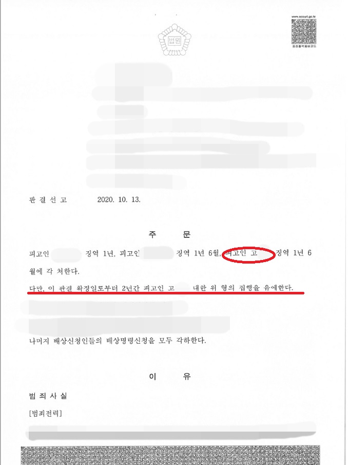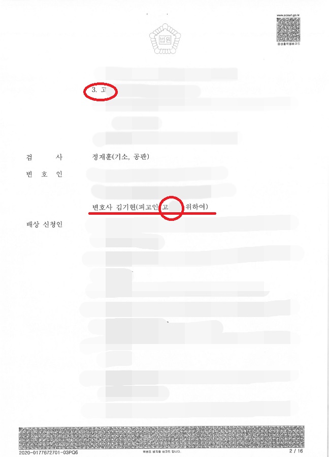 3. 3명의 피고인 중 김기현 변호사가 변호를 맡은 피고인 3 고00씨 만 집행유예를 받아낸 케이스