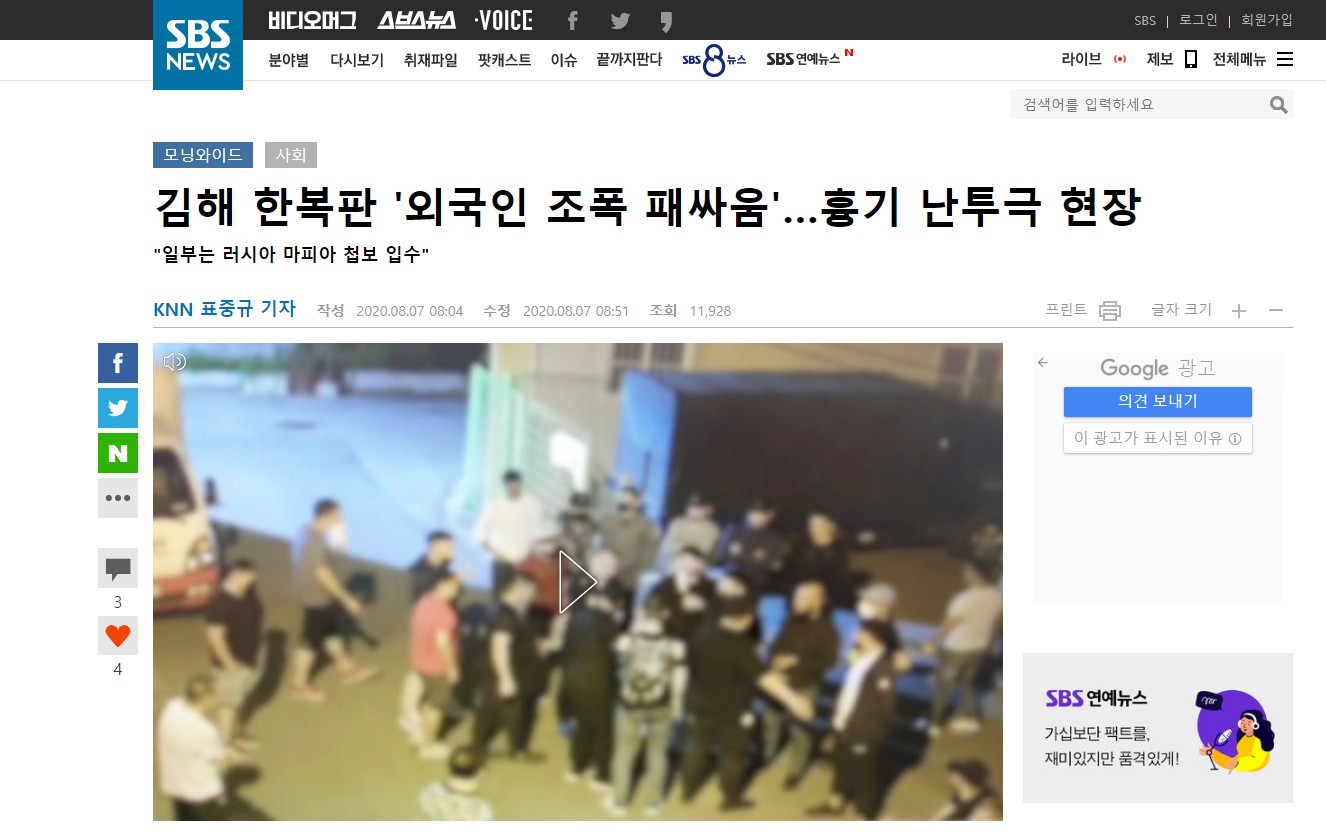 작년 6월 김해에서 러시아 국적의 고려인들의 패싸움이 있었습니다.