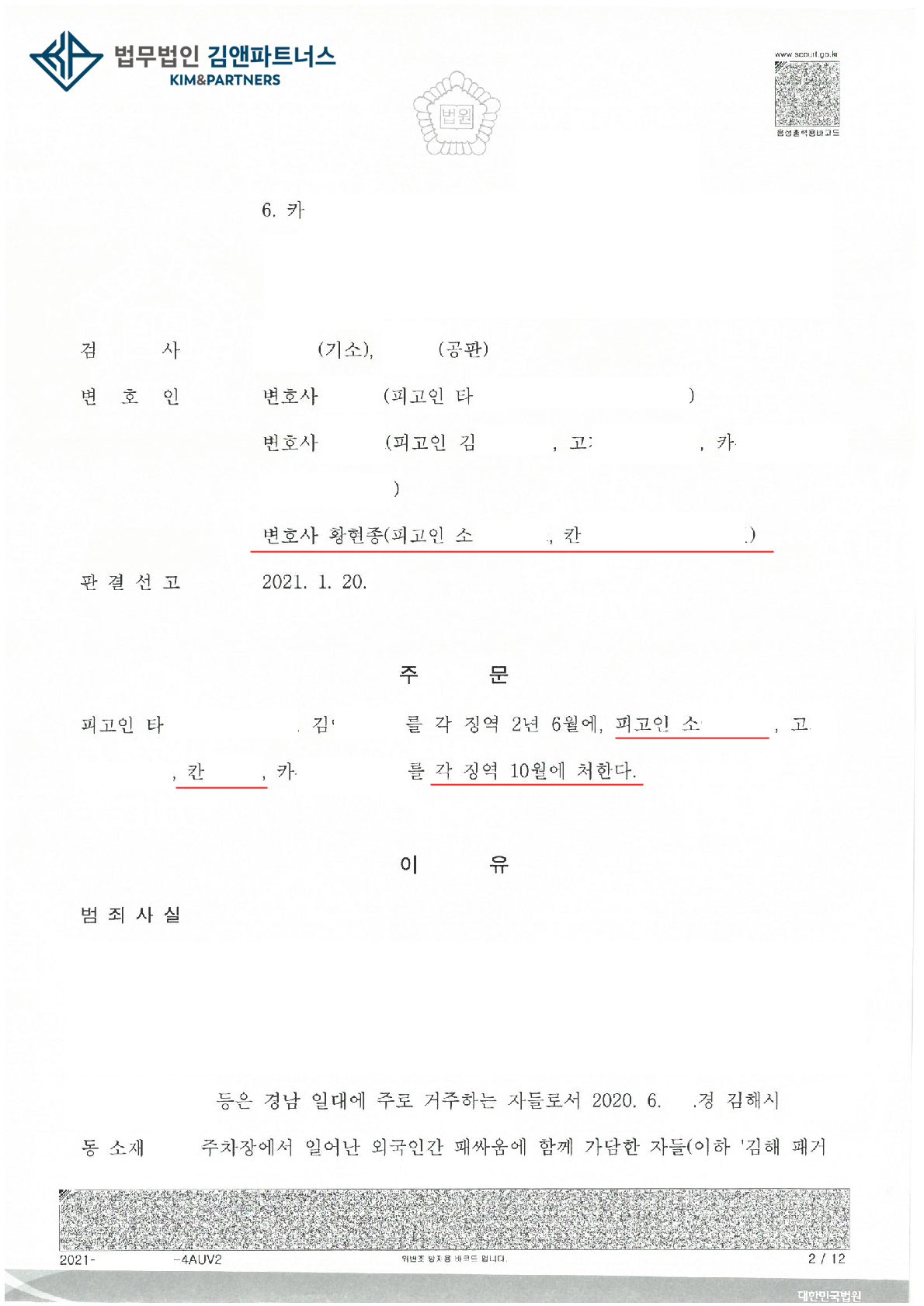 결과는 황변호사의 의뢰인들은 징역 10개월, 잘못을 인정하지 않고 부인하며 다툰 사람들은 징역 2년 6개월이 선고되었습니다.
