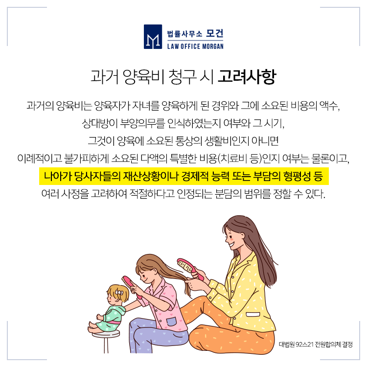 단, 과거양육비청구는 일시금으로 청구하는 것이기 때문에 당사자들의 재산상황이나 경제적 능력 도는 부담의 형평성 등 여러 사정도 함께 고려하여야 할 것입니다. 만약 청구인이 과거 양육비로 과도한 금액을 청구하는 경우도 있기 때문에 심판청구의 상대방이 되셨다면 합리적인 선에서 양육비의 액수가 정해질 수 있도록 대응하여야 할 것입니다.