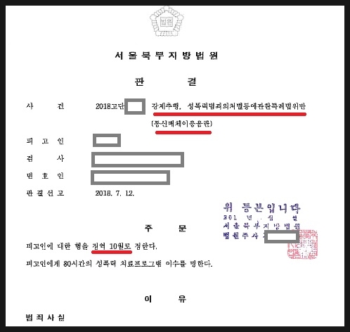 - 가해자는 모두 유죄 선고를 받고 징역 10월 법정 구속