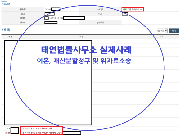 이혼, 재산분할청구소송 태연법률사무소 실제사례
