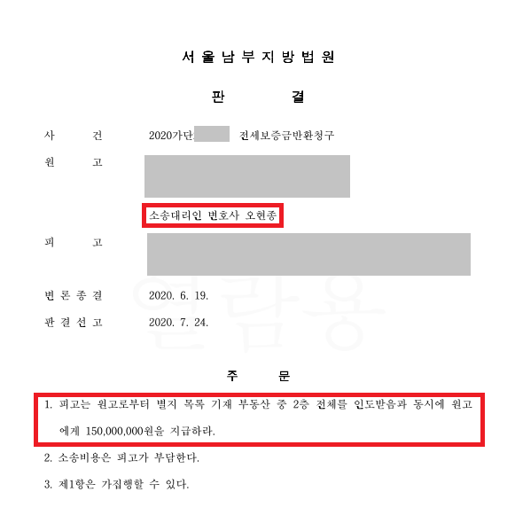 - 임차인을 대리하여 임대인에게 전세보증금반환소송 제기