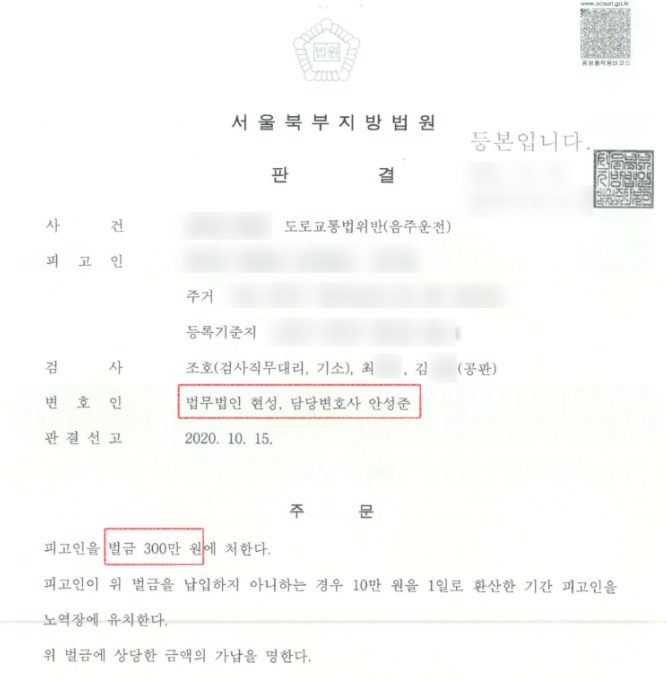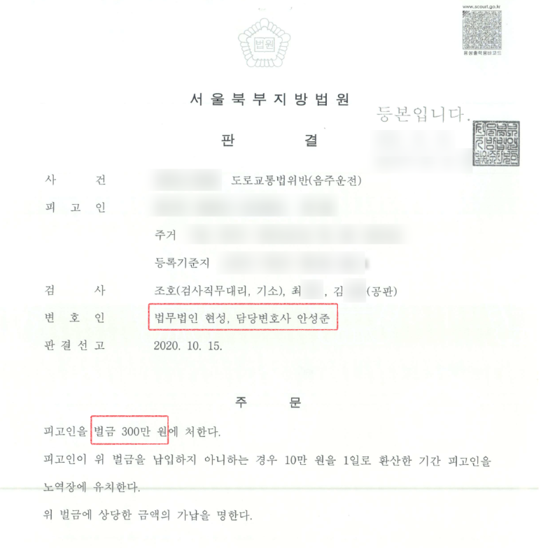 오늘 포스팅은 혈중알콜농도 0.1%의 술에 취한 상태로 운전을 하다 단속된 피고인을 변호하여 벌금형의 감형을 받고 운전면허 취소처분에서 정지처분의 선처를 이끌어냈던 사안을 소개합니다.