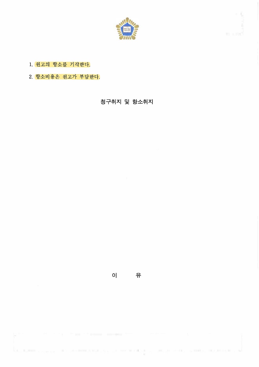 결국, 재산분할에 관해 다툴 부분이 많았으나 아내가 제기한 항소가 기각되었고, 전부 승소함으로써 성공적으로 마무리가 된 사안입니다.