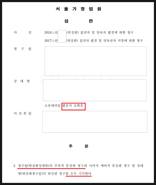 - 친권 및 양육권자 변경심판 청구 기각 (피고 승소)