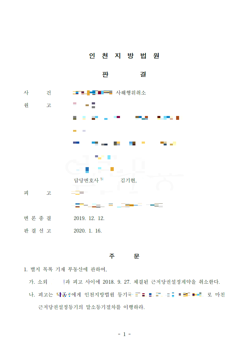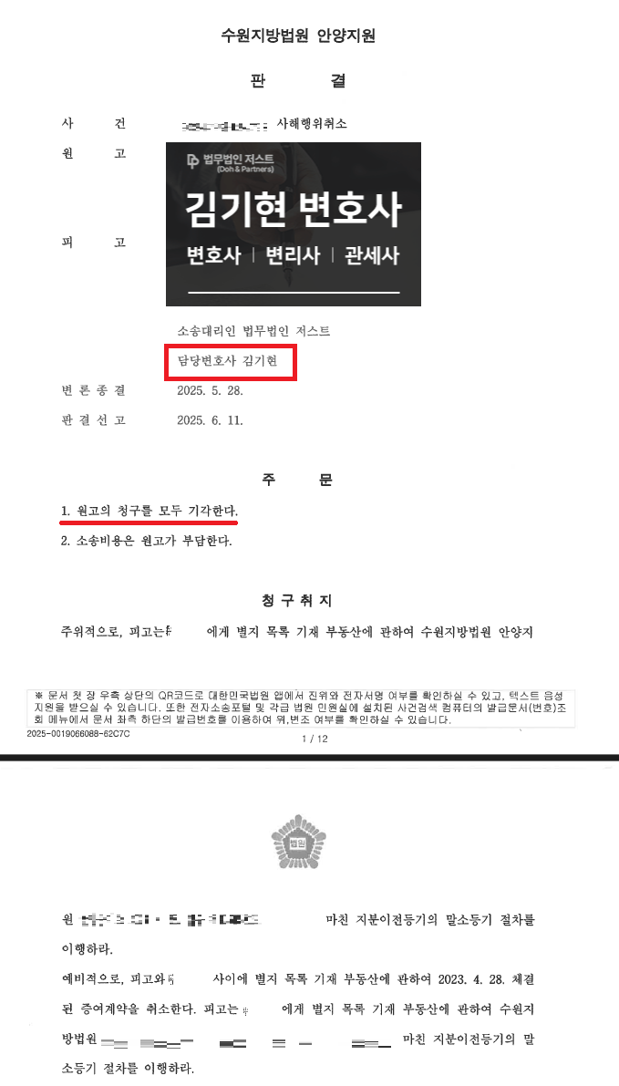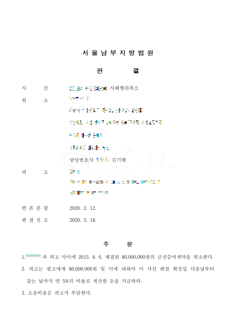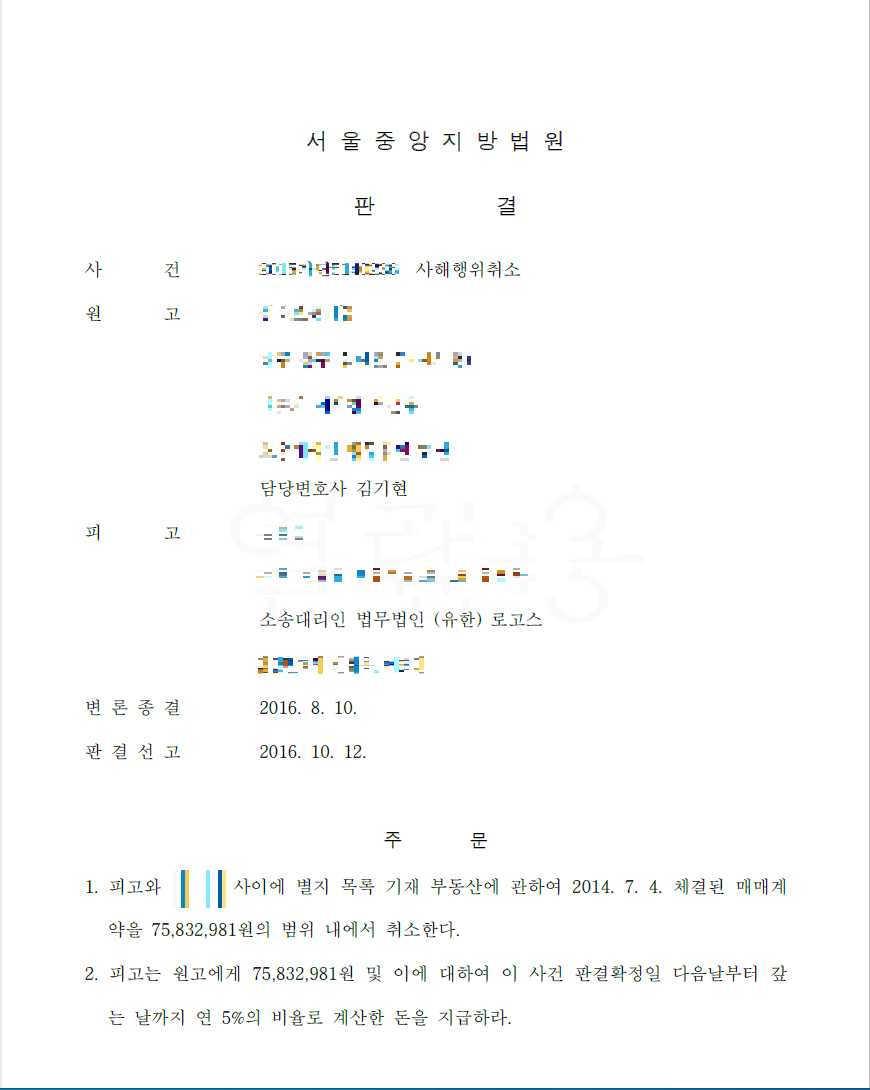 1. 김기현 변호사의 사해행위 취소소송 승소 사례
