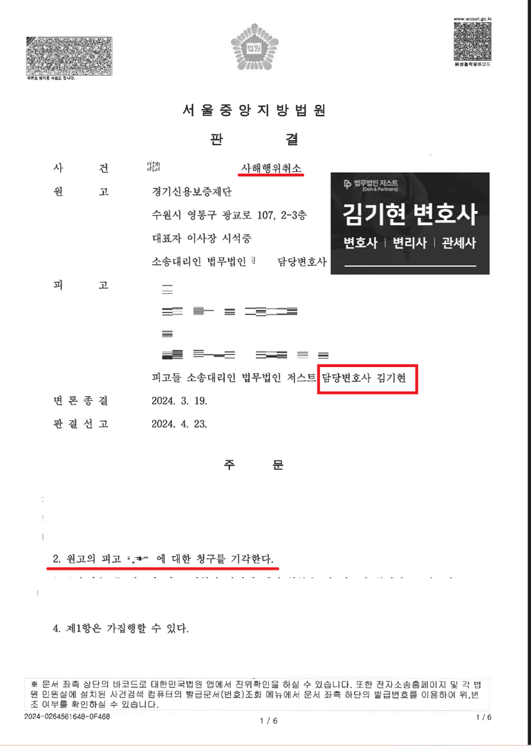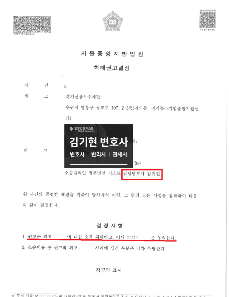 김기현 변호사가 6년 이상 신용보증기금, 기술보증기금의 자문변호사로 활동하였고, 그 외에도 한국무역보험공사, 한국주택금융공사, 경기신용보증재단 자문 변호사, 서울신용보증재단, 소상공인시장진흥공단 등의 자문변호사를 역임하였다보니, 원고 지위에서의 승소 사례만 있을 것을 우려하시는 의뢰인 분들이 많습니다.