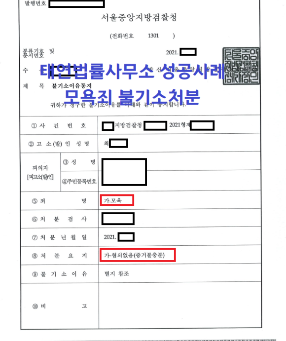 모욕죄 혐의없음(증거불충분)처분을 받다
