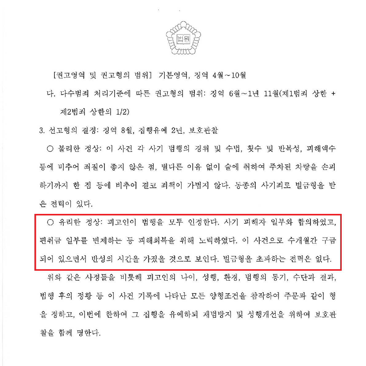 의뢰인은 동종 전과가 있고 단기간에 범행을 반복하였음에도 불구하고 징역 8월에 집행유예 2년이라는 관대한 처벌을 받았습니다.