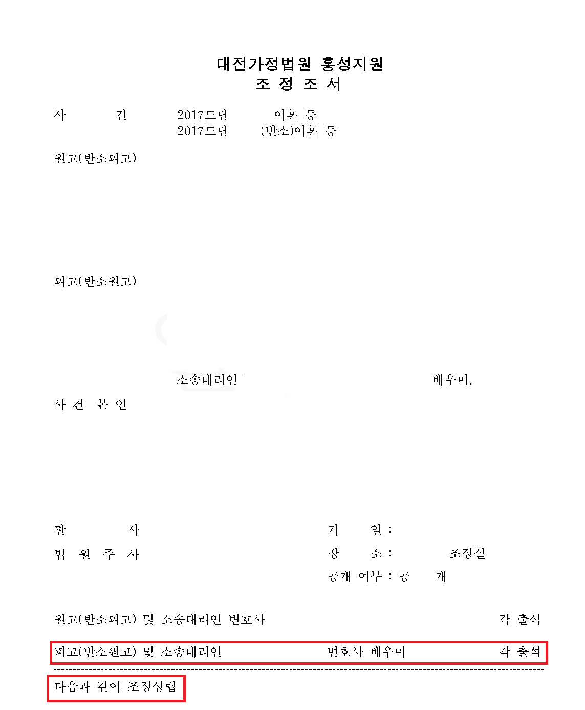 아내측은 반소장을 받자마자 억지를 부리던 태도를 변경해 원만하게 합의로 해결하자고 제안을 해왔고 이에 법원에서 조정기일이 열렸습니다.