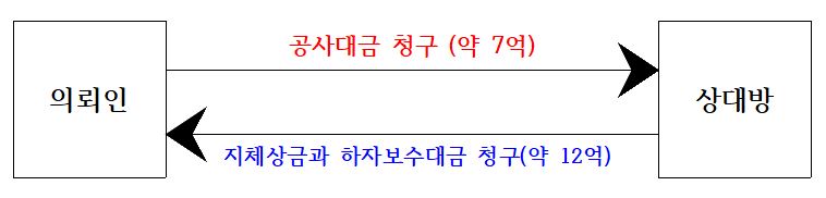 상대방은 지체상금률을 이유로 한 지체상금과 하자보수등을 이유로한 대금을 청구를 했습니다.