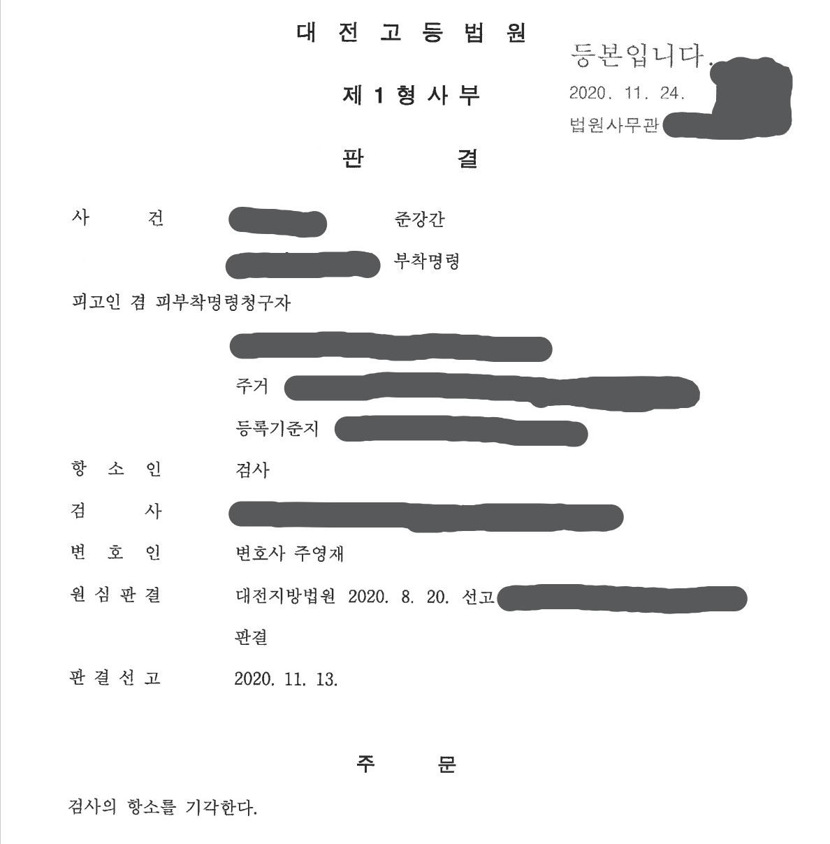 이에 검사는 1심의 사실인정이 잘못됐다면서 곧바로 항소했지만 항소심 재판부 역시 주영재 변호사의 주장을 받아들여 검사의 항소를 기각했고, 검사가 상고를 포기함으로써 위 판결은 확정됐습니다.