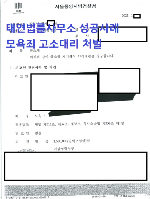 [태연법률사무소 모욕죄 고소대리 성공사례, 벌금형 150만원]