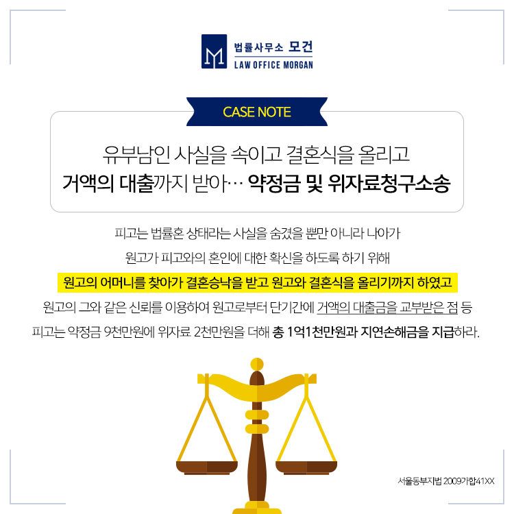 실제로 자신이 유부남(기혼자)인 사실을 숨기고 마치 결혼까지 고려하는 진실한 관계인 것처럼 행세하며 미혼여성과 사귀며 성관계를 해온 사례들이 많고 이에 대한 피해 여성들의 위자료청구소송 또한 적지 않습니다. 오늘 소개해드릴 이다슬 대표 변호사의 승소사례도 이러한 성적자기결정권 침해에 따른 손해배상청구소송입니다.