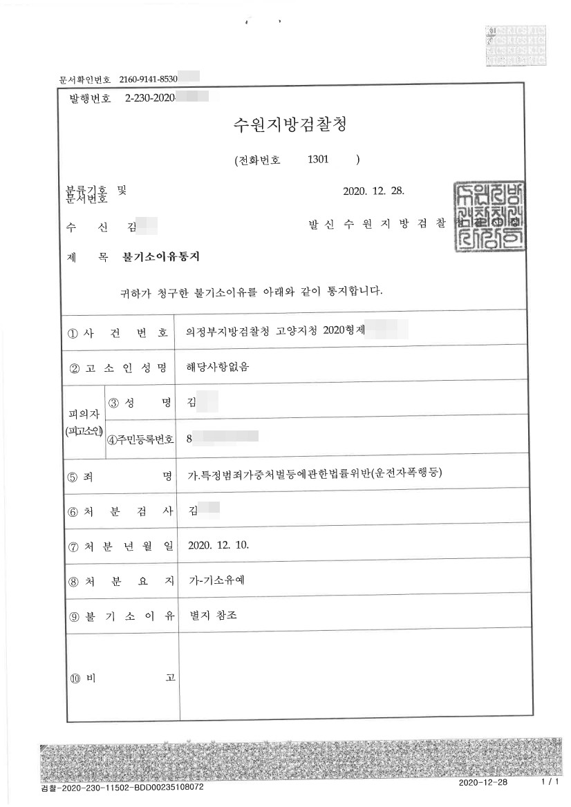 변호인의견서를 통해 강력한 처벌이 필요한 특가법 위반 운전자폭행 상황이 아님을 검찰에 설득시켰고, 동시에 택시기사에게도 위와 같은 상황임을 주지시킨 결과 최소한의 금액으로 합의도 성사시켰습니다. 최종적으로 약 5개월의 수사기간이 경과한 끝에 벌금형도 아닌 [기소유예] 처분을 받을 있었습니다.