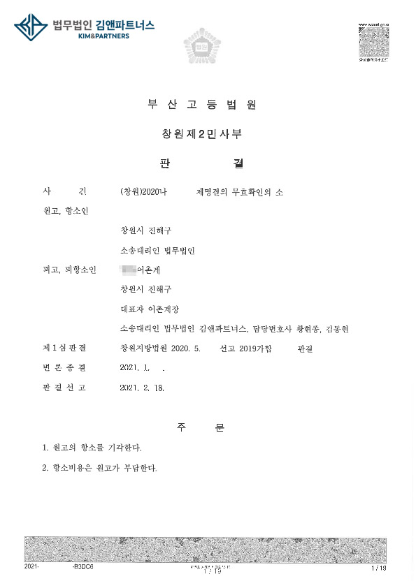 이 사건의 경우에도 상대방은 정관상 서면으로 소집통지를 하지 않았다고 주장하며 절차적인 부분에 관한 하자를 주장하였고 종결되었던 변론이 재개되어 이에 대해 소명하고 현실적인 부분과 절차 반복의 무용성 등에 관해 변론하였습니다.