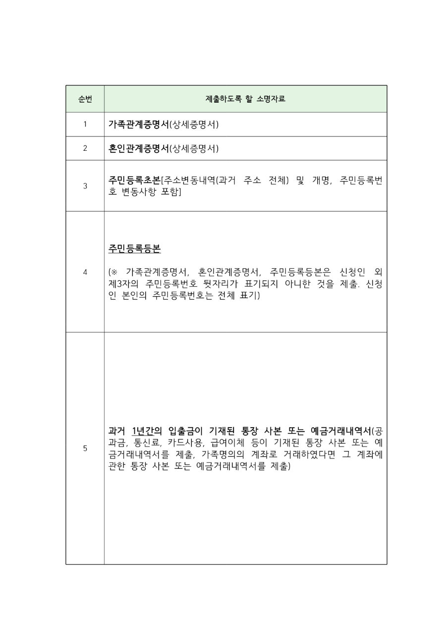 요는 신청시 위 서류만 첨부하면 되겠습니다.