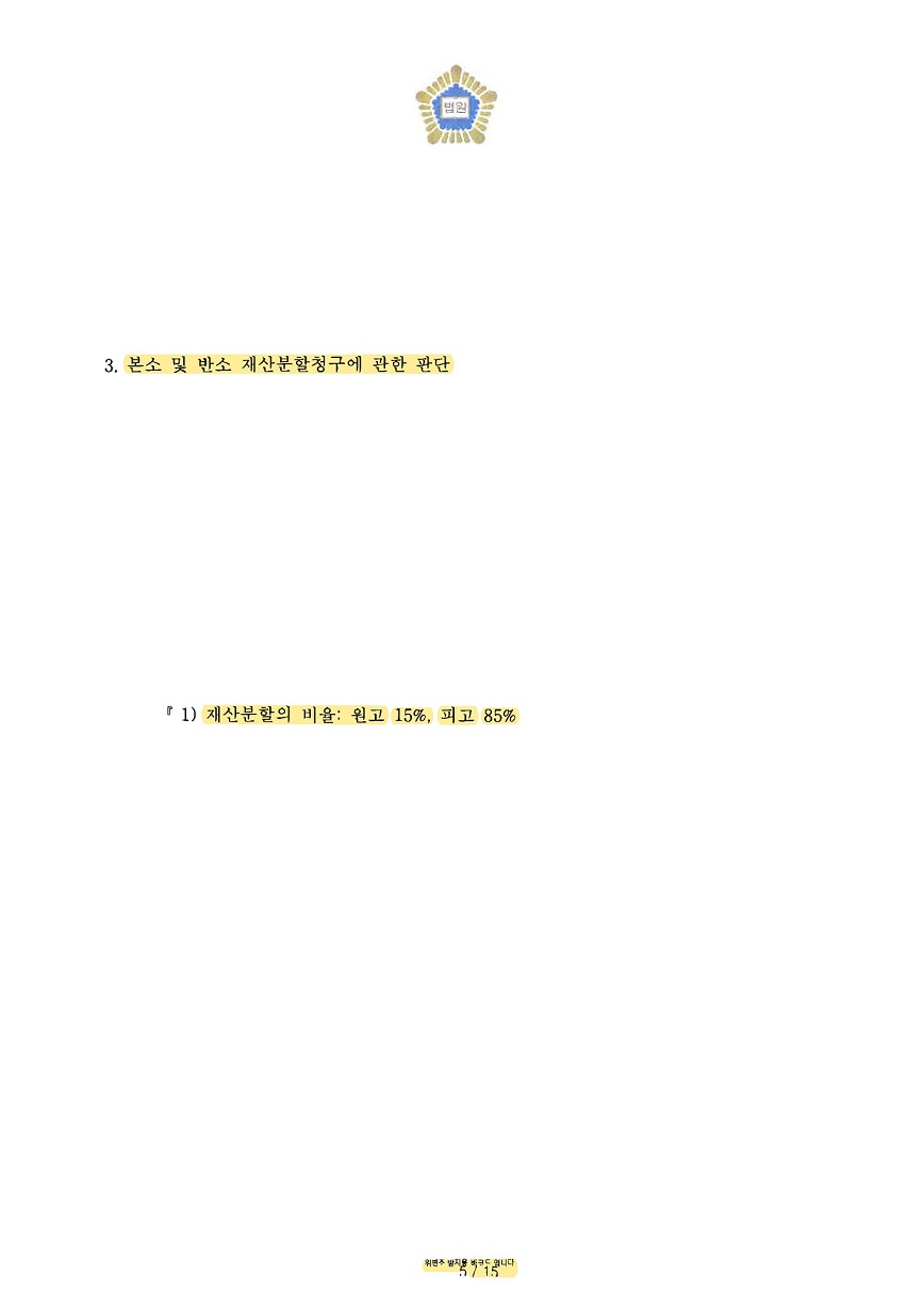 통상적으로 혼인 기간이 20년일 경우 남편의 기여도로 최소 50% 이상 인정되는 것이 보통인데, 이 사안의 경우 재산분할에 대한 치열한 다툼 끝에 결국 의뢰인이 기여도로 85%를 인정받아 성공적으로 마무리된 사례입니다.