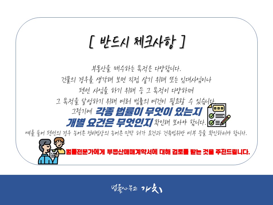 마지막으로 법률전문가에게 부동산매매계약서에 대해 검토를 받는 것을 추천드립니다.