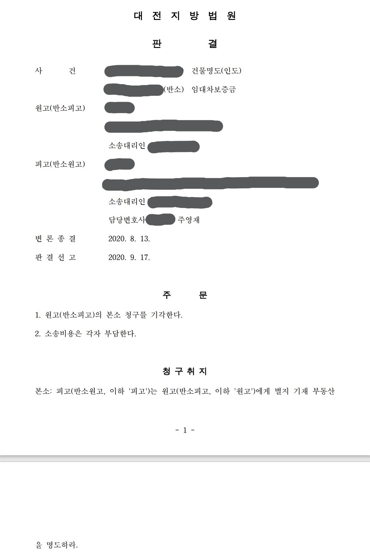 법원은 위와 같은 주영재 변호사의 주장을 대부분 받아들여 이 사건 임대차계약은 갱신거절 사유가 없다면서 원고의 청구를 기각하였습니다.