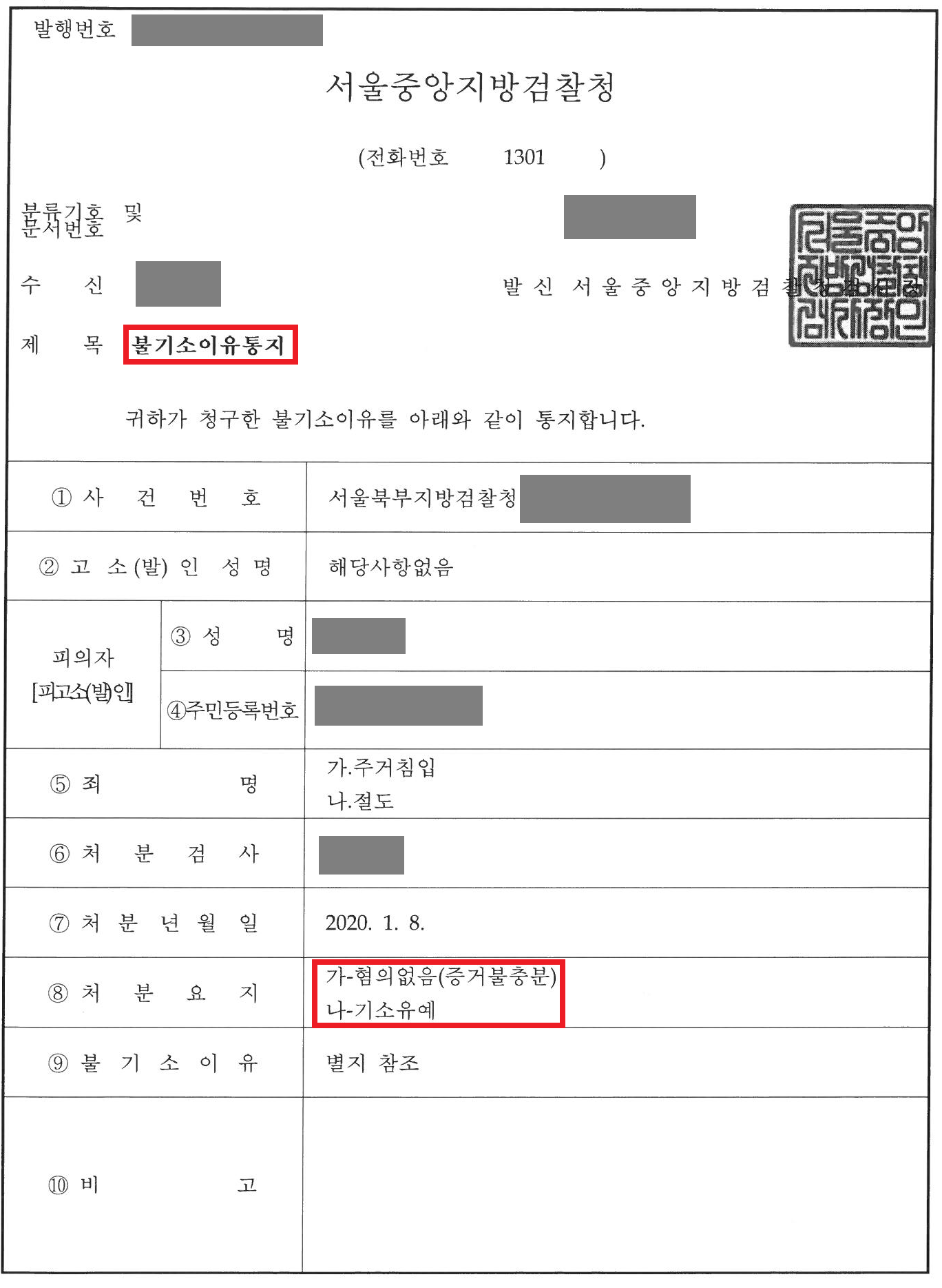 검찰은 저의 주장을 받아들여 주거침입 혐의에 대해서는 무혐의 처분을 하였고, 절도 혐의에 대해서는 절도 사실은 인정이 되나 처벌의 필요성이 적다는 점을 들어 기소유예 처분을 하였습니다. 의뢰인은 남자친구와 결별하고 동거관계를 정리하는 와중에 남자친구로부터 터무니없는 고소까지 당하여 형사처벌을 받을 위기에 놓였으나, 신속한 법적 도움을 받고 어떠한 처벌도 없이 사건을 마무리할 수 있었습니다.