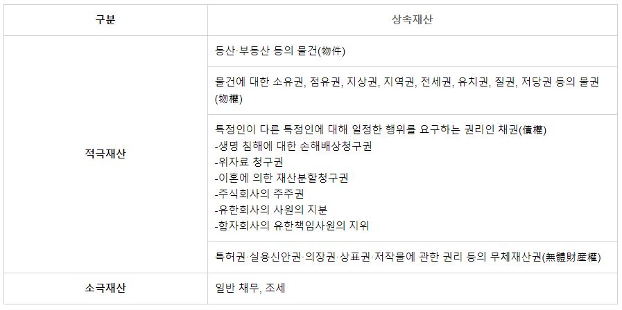 상속재산에 해당하는 것의 예시는 다음과 같습니다.