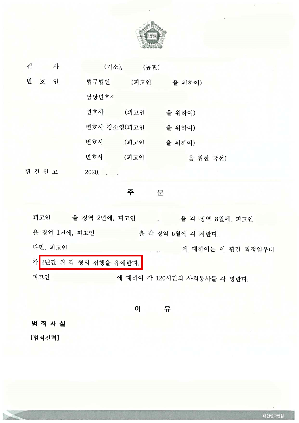 상기와 같이 사기죄에서 고액의 피해금액에 더해 피해변제가 안 되고, 합의도 안 된 불리한 정황이어서 실형이 선고될 가능성이 높은 상황이었으나 의뢰인께서는 회사를 계속적으로 운영하기 위해 실형만을 피해달라며 저희 사무실을 찾아주셨습니다.