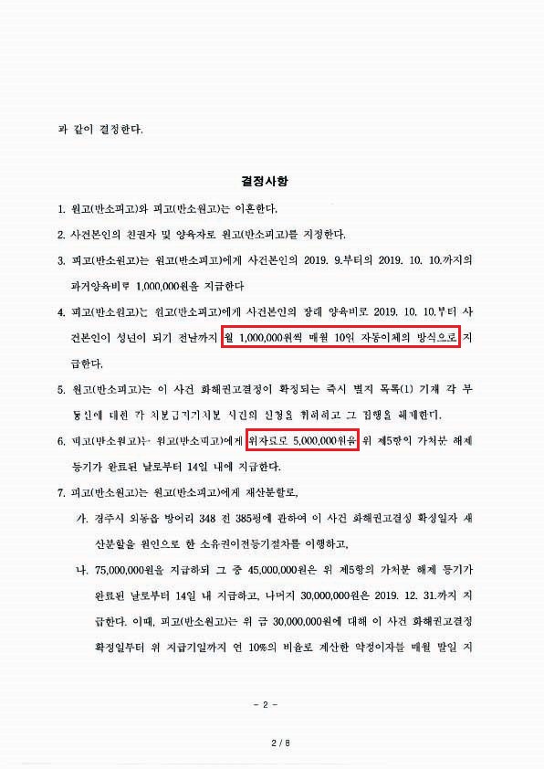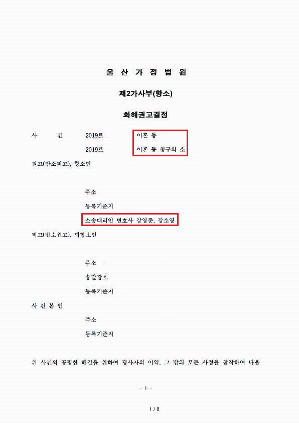 본 사건의 경우 재판부의 화해권고결정을 통하여 의뢰인의 청구가 모두 인용되었고 1심에서 제대로 인정받지 못한 위자료뿐 아니라 의뢰인이 만족할 수 있는 재산분할 액수를 인정받을 수 있었습니다. 무엇보다 매달 ‘자동이체’로 100만 원의 양육비를 안정적으로 지급받을 수 있게 되어 의뢰인께 좋은 결과를 가져다드리게 되었습니다.