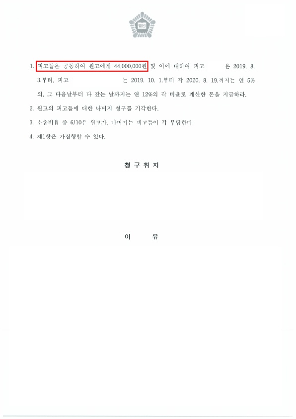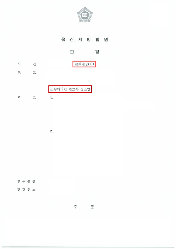 울산지방법원에서는 공인중개사와 한국공인중개사협회를 상대로 한 의뢰인의 청구를 받아들여 의뢰인이 입은 손해액의 40%에 대한 승소 판결을 얻을 수 있었습니다. 유사한 판례들에서 보통 15%에서 30% 손해액이 인정되는 것과 비교했을 때 상당히 좋은 성과를 거둔 사례였습니다.